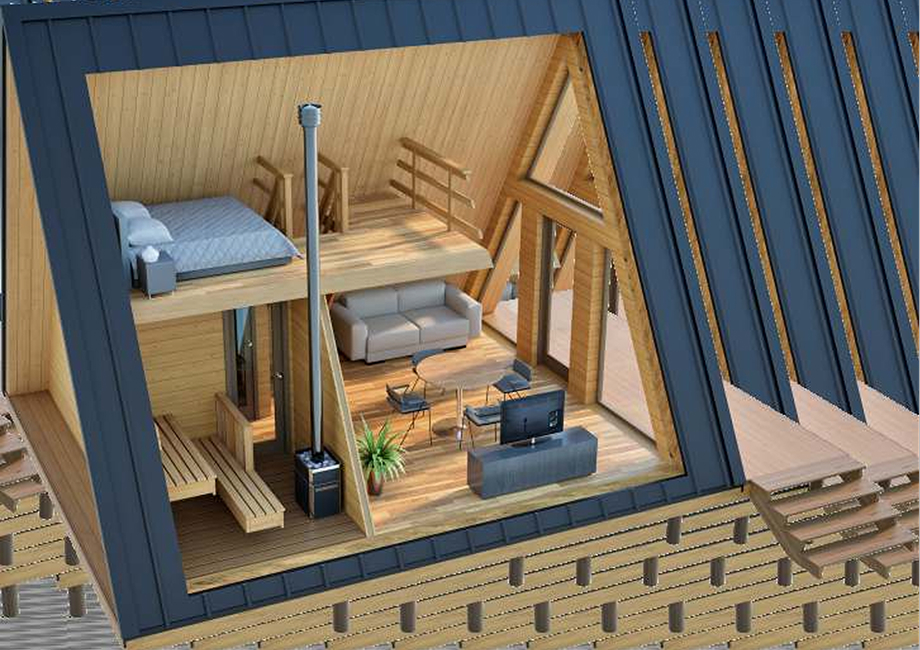 +интегрированная в дом сауна (длина — 2,5 м, ширина — 1,8 м, печь «Теплодар» 8 кВт, полог + две скамьи, вентиляция, стеклянная дверь, пол — керамогранит)