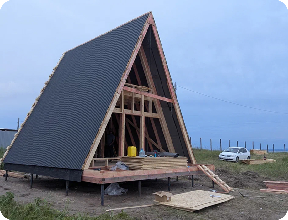 Фундамент на винтовых сваях, коробка, кровля, фасад, окна, электроснабжение, отопление (конвекторы), отделка стен вагонкой, централизованное водоснабжение.